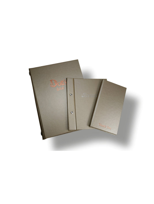Αυτά τα καλύμματα μενού κατασκευάζονται χρησιμοποιώντας ένα ψηφιακό βινύλιο εκτύπωσης, αυτό επιτρέπει ένα πλήρως προσαρμοσμένο σχεδιασμό σε όλο το αντικείμενο.Learn More