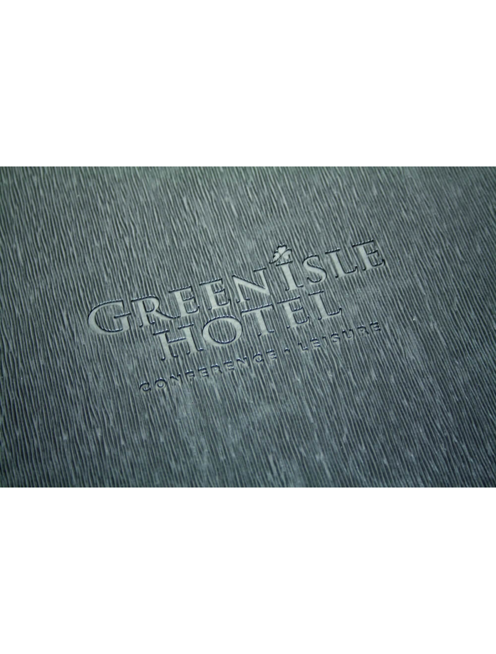 Blind embossing is a fantastic way to print your logo with a self-coloured relief finish.  Hot foil block printing is available in a wide range of metallic and coloured foil options.