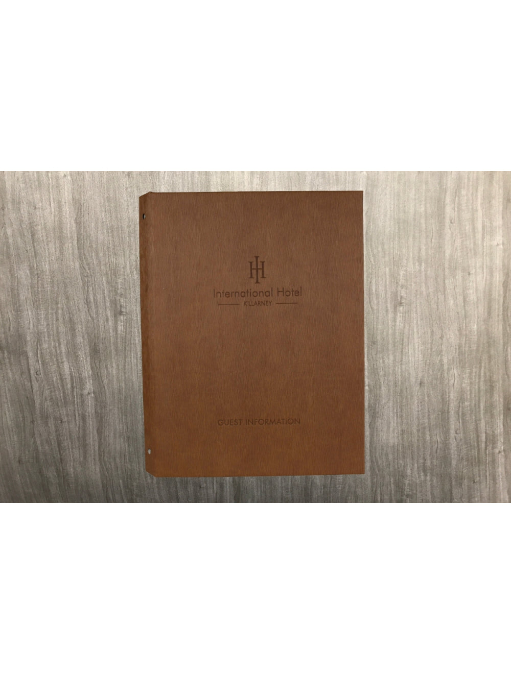 The ‘Paris’ guest room folders can be custom made with a variety of personalisation options to make sure your brand makes a real impression with your customers.