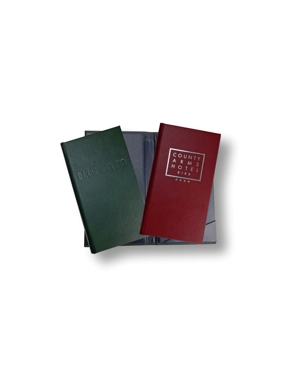 Our Edinburgh range of Bill Presenters are made using 85% genuine leather fibres, waste retrieved from tanneries. These Bill Presenters look, smell and feel like genuine leather.