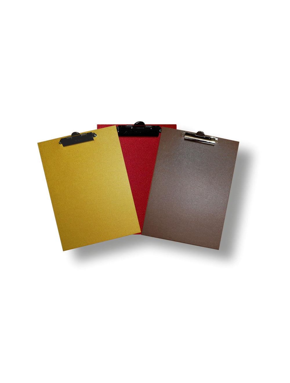 Clipboards in a very hard wearing buckram cloth, with over 40 colours available.