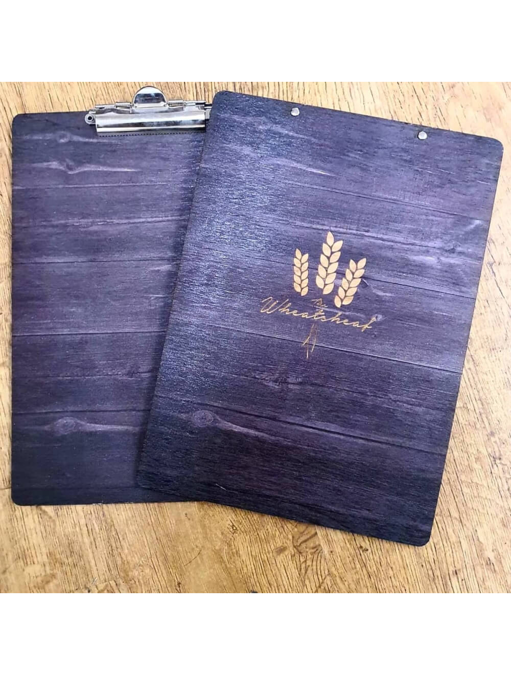 Bring the elegance and rustic appeal of real wood to your venue with the Wood clip board, which uses a natural birch and a choice of 7 different wood finishes or the ability to use your own pattern. Available in A4 and A5 with a clip fixing and optional acetate to protect the menus.